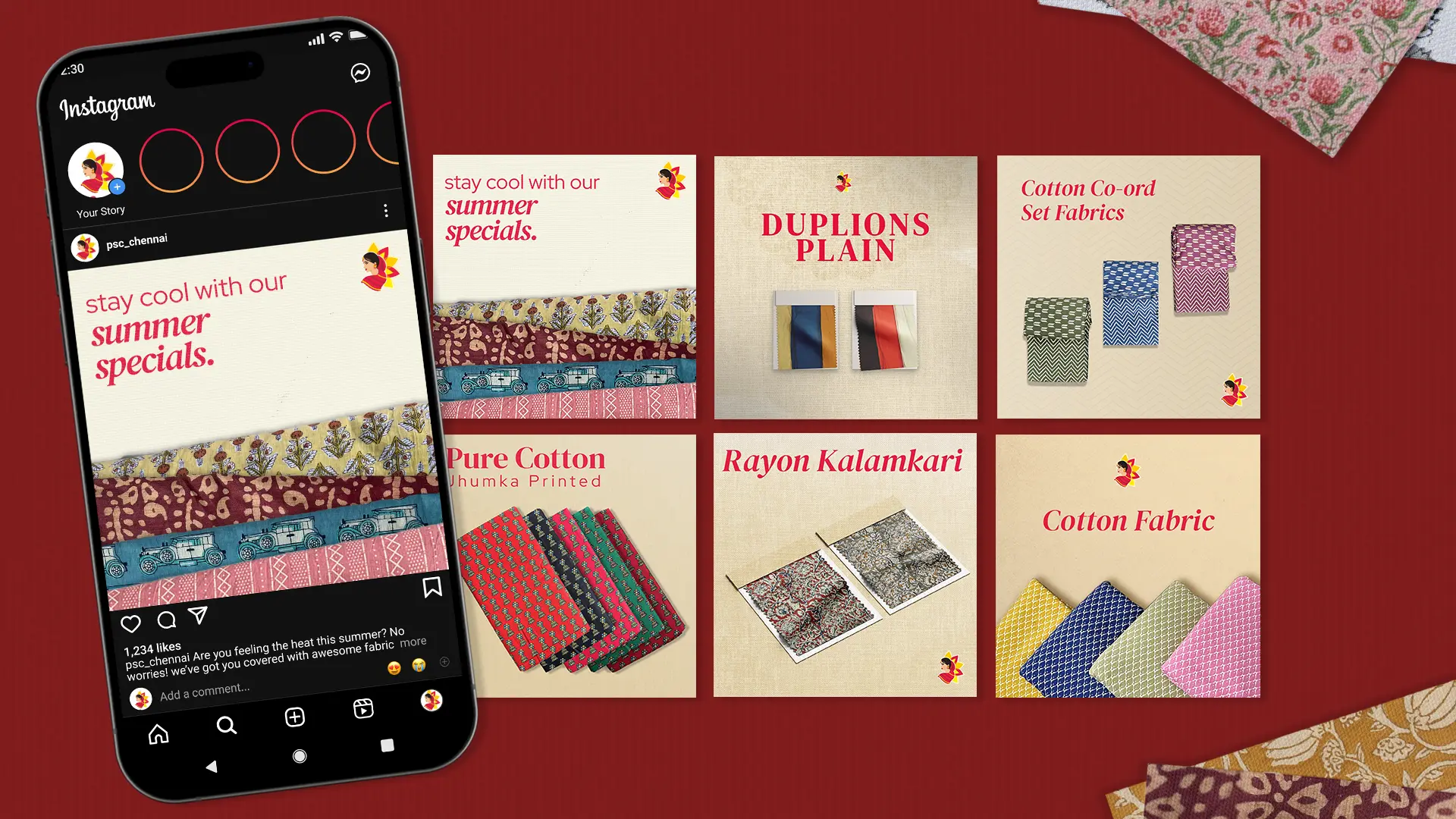 Pradeep Saree Centre, a saree retailer with 40 years of experience, wanted to enhance its Instagram presence to showcase its wide range of high-quality fabrics and sarees. With a vast collection and a reputation for trust and quality, the goal was to design an Instagram feed that highlights the rich textures, colors, and patterns of their sarees, appealing to both retail and wholesale customers.